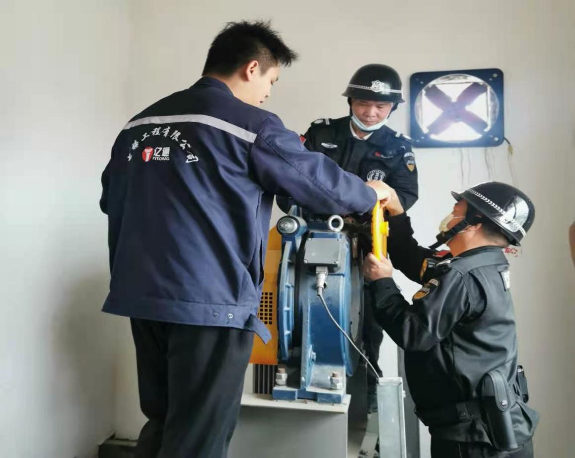 ????????培訓(xùn)期間,電梯維保員給參訓(xùn)人員講解電梯困人時如何使用三角鑰匙開門、機房如何操作盤車手柄等知識?,F(xiàn)場示范完畢后,參訓(xùn)人員進行了實際操作演練。