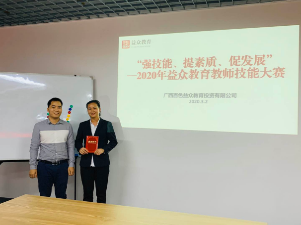 ??? 為了進(jìn)一步提升教師課堂授課水平,培養(yǎng)教師的教學(xué)技能和綜合素質(zhì),2020年3月下旬,廣西百色益眾教育投資有限公司開展了主題為“強(qiáng)技能、提素質(zhì)、促發(fā)展”的教師教學(xué)技能大賽。比賽分為數(shù)學(xué)組和語(yǔ)文組,以現(xiàn)場(chǎng)講課形式進(jìn)行,賽點(diǎn)是考察教師們對(duì)教學(xué)目標(biāo)的把控、教學(xué)內(nèi)容的理解、教學(xué)過(guò)程的設(shè)計(jì)和教學(xué)方法的運(yùn)用等教學(xué)綜合能力。參賽教師各有特點(diǎn),比賽過(guò)程精彩紛呈,教師們展現(xiàn)出了好的教學(xué)素養(yǎng)、嫻熟的教學(xué)技能,達(dá)到了以賽代練、互相學(xué)習(xí)、共同成長(zhǎng)的效果。(通訊員:覃世翔)