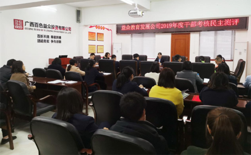 2019年12月31日,益眾教育公司召開2019年度干部民主測評考核會議,對益眾托管公司、益眾后勤公司主管以上干部進行年度考核民主測評,公司全體管理人員參加會議。會議強調(diào)了開展干部民主測評考核工作的重要性,要求客觀公正的對測評對象的德、能、勤、績、廉等方面進行據(jù)實評價,嚴格遵守考核紀律,營造風(fēng)清氣正的考核工作環(huán)境。
