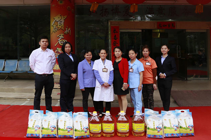 益眾托管公司的志愿者給華宇樂安老人院送上了米和油等慰問品