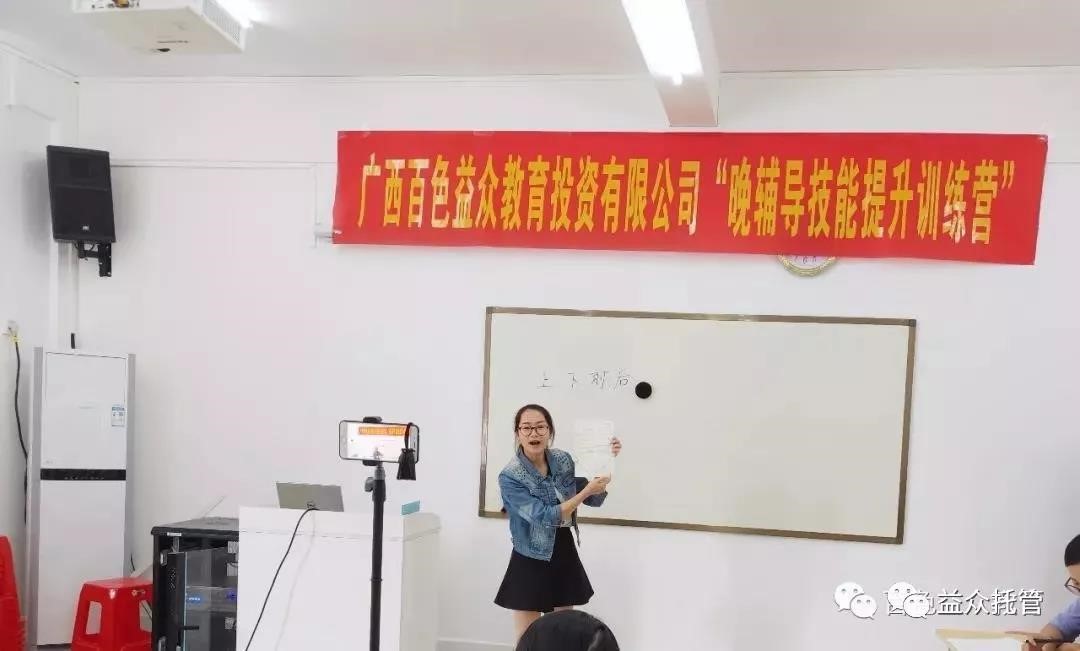 2018年10月7日,廣西百色益眾教育投資有限公司“晚輔導技能提升訓練營”開營了?!巴磔o導技能提升訓練營”以“讓孩子找到更好的自己”的服務理念為指引,為晚輔導老師專門組織開設培訓營地。上午8:30,在公司運營部部長謝裕均老師的開營致詞中,開始了訓練營一天半的培訓收獲之旅。