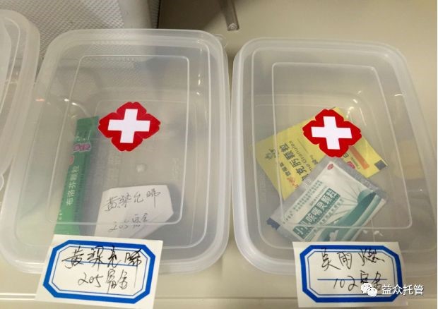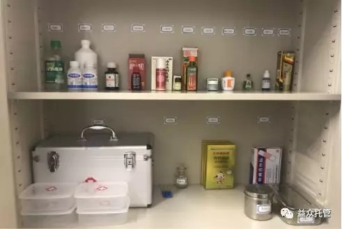 校區(qū)醫(yī)療角還專門設(shè)立了放置生病學(xué)生從家里帶來(lái)學(xué)校服用的藥品,每位學(xué)生按標(biāo)簽標(biāo)好,密封放置藥盒中,確保藥品不混淆、不受潮,按家長(zhǎng)要求照顧孩子按時(shí)按量服藥。
