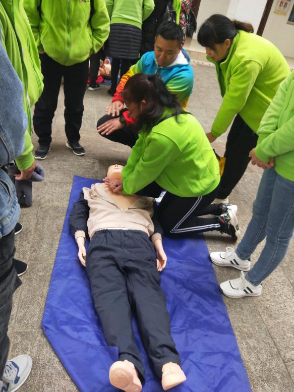 培訓(xùn)老師現(xiàn)場(chǎng)教導(dǎo)學(xué)員開展應(yīng)急救護(hù)實(shí)操