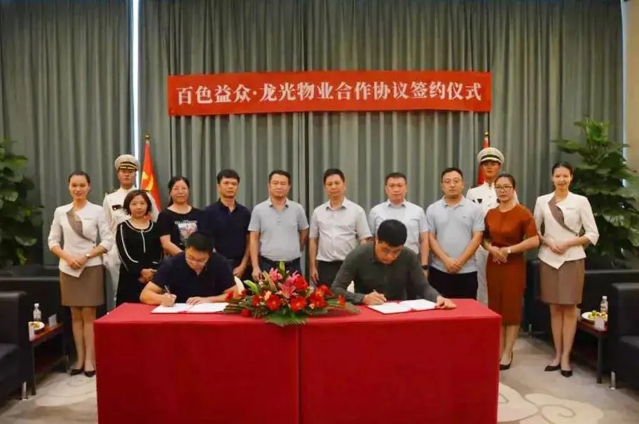 ????????日前,由廣西百色益眾投資有限公司旗下百色益眾物業(yè)服務(wù)有限公司與深圳市前海龍光服務(wù)控股有限公司旗下深圳市龍光實(shí)業(yè)有限公司合資成立的廣西龍光益眾物業(yè)服務(wù)有限公司的簽約儀式在南寧龍光國際舉行。