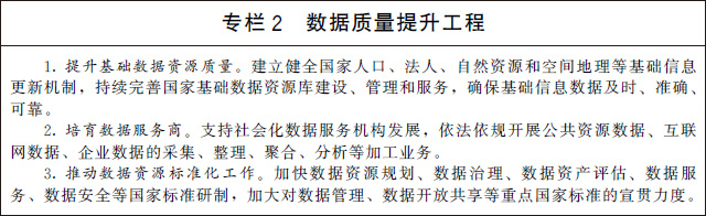 (一)強(qiáng)化高質(zhì)量數(shù)據(jù)要素供給。支持市場(chǎng)主體依法合規(guī)開(kāi)展數(shù)據(jù)采集,聚焦數(shù)據(jù)的標(biāo)注、清洗、脫敏、脫密、聚合、分析等環(huán)節(jié),提升數(shù)據(jù)資源處理能力,培育壯大數(shù)據(jù)服務(wù)產(chǎn)業(yè)。推動(dòng)數(shù)據(jù)資源標(biāo)準(zhǔn)體系建設(shè),提升數(shù)據(jù)管理水平和數(shù)據(jù)質(zhì)量,探索面向業(yè)務(wù)應(yīng)用的共享、交換、協(xié)作和開(kāi)放。加快推動(dòng)各領(lǐng)域通信協(xié)議兼容統(tǒng)一,打破技術(shù)和協(xié)議壁壘,努力實(shí)現(xiàn)互通互操作,形成完整貫通的數(shù)據(jù)鏈。推動(dòng)數(shù)據(jù)分類分級(jí)管理,強(qiáng)化數(shù)據(jù)安全風(fēng)險(xiǎn)評(píng)估、監(jiān)測(cè)預(yù)警和應(yīng)急處置。深化政務(wù)數(shù)據(jù)跨層級(jí)、跨地域、跨部門有序共享。建立健全國(guó)家公共數(shù)據(jù)資源體系,統(tǒng)籌公共數(shù)據(jù)資源開(kāi)發(fā)利用,推動(dòng)基礎(chǔ)公共數(shù)據(jù)安全有序開(kāi)放,構(gòu)建統(tǒng)一的國(guó)家公共數(shù)據(jù)開(kāi)放平臺(tái)和開(kāi)發(fā)利用端口,提升公共數(shù)據(jù)開(kāi)放水平,釋放數(shù)據(jù)紅利。