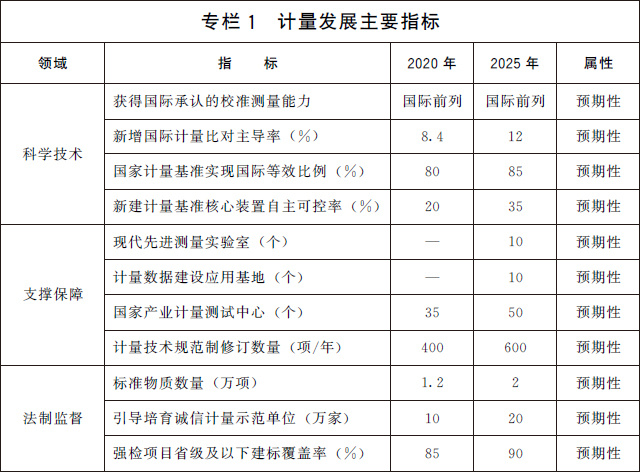 (三)發(fā)展目標。到2025年,國家現(xiàn)代先進測量體系初步建立,計量科技創(chuàng)新力、影響力進入世界前列,部分領域達到國際領先水平。計量在經(jīng)濟社會各領域的地位和作用日益凸顯,協(xié)同推進計量工作的體制機制進一步完善。
